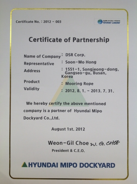 DSR은 2012년 8월 1일, 중형선박 부문 세계1위 조선업체인 (주)현대미포조선과 파트너쉽을 체결했다. 이번 파트너쉽은 (주)현대미포조선 측이 DSR의 우수한 기술력과 높은 수준의 고객 맞춤형 제품 품질에 만족한 결과이며, (주)현대미포조선의 선박은 선주들에게 더 큰 만족을 전해줄 것이다.